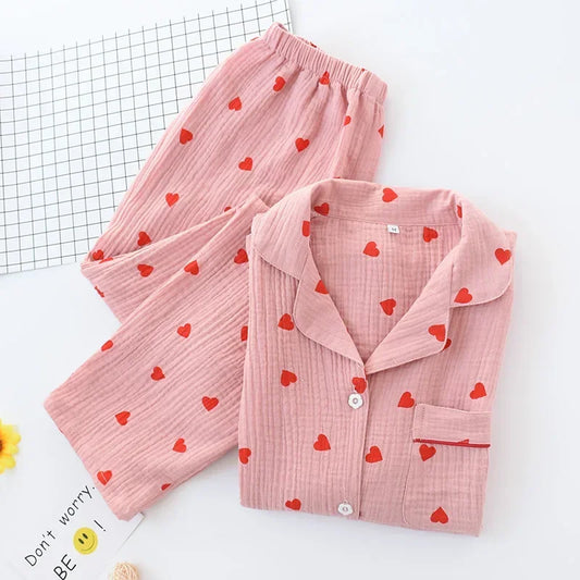 Love Printed Women's Pajamas Sweet Heart Pure Cotton Sleepwear Comfort Soft nightwear Tiktok Popular Lovely cute Two piece set